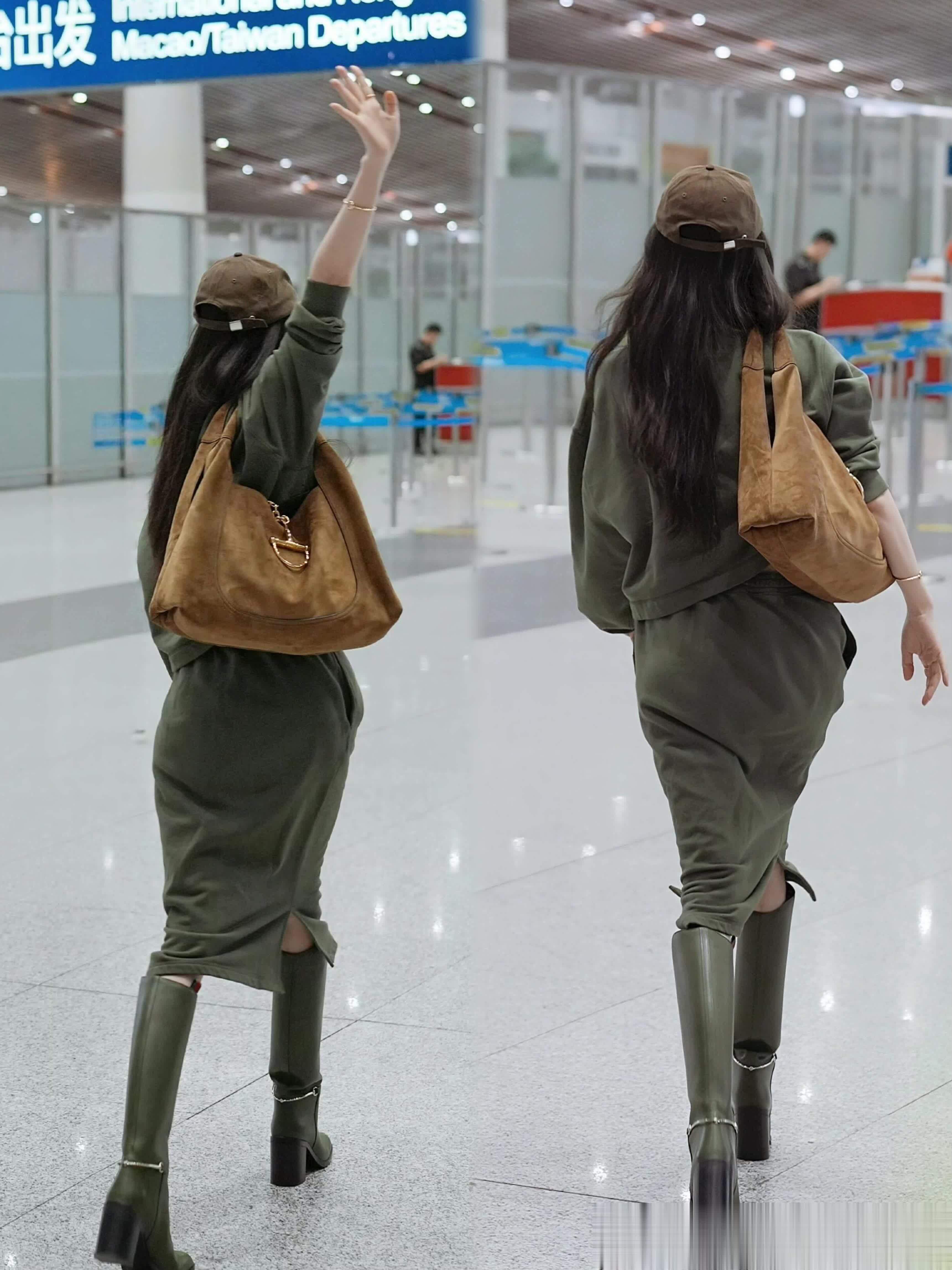再看倪妮的旅行穿搭,那股“随便穿穿都好看”的松弛感真的学不来!她最近回上海那套look,一身同色系穿搭太绝了:浅卡其色风衣敞开穿,里面搭件同色针织衫,底下配条米色阔腿裤,裤脚堆在棕色短靴上,松松垮垮的却透着股利落。最吸睛的是那个绿色饺子包,亮得恰到好处,像给整套素色穿搭点了颗“活力纽扣”,背着包走在机场,头发随意地挽在脑后,戴副墨镜,连赶路都像在拍旅行大片。